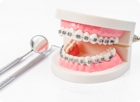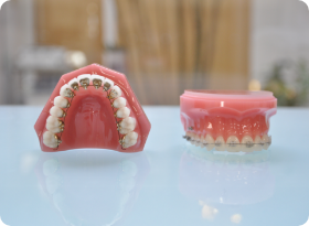 歯にブラケットを装着し、ワイヤーで歯を動かす方法です。